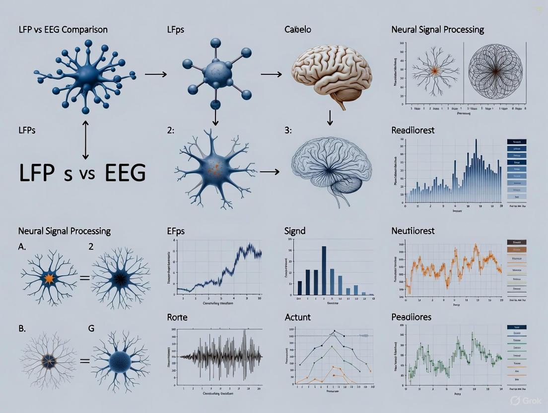 The physiological origins of LFP and EEG translate into distinct technical profiles, which are summarized in the table below for direct comparison.