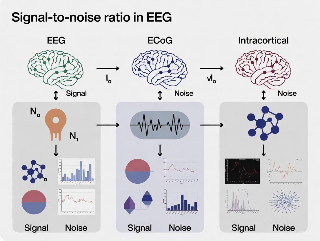 This article provides a systematic analysis of the signal-to-noise ratio (SNR) across the primary neural recording modalities: electroencephalography (EEG), electrocorticography (ECoG), and intracortical microelectrodes.